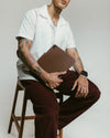 Our premium leather is aniline dyed to achieve a brilliant color without losing any of its natural features and the finish matures over time to develop a dark, lustrous finish totally unique to you.
